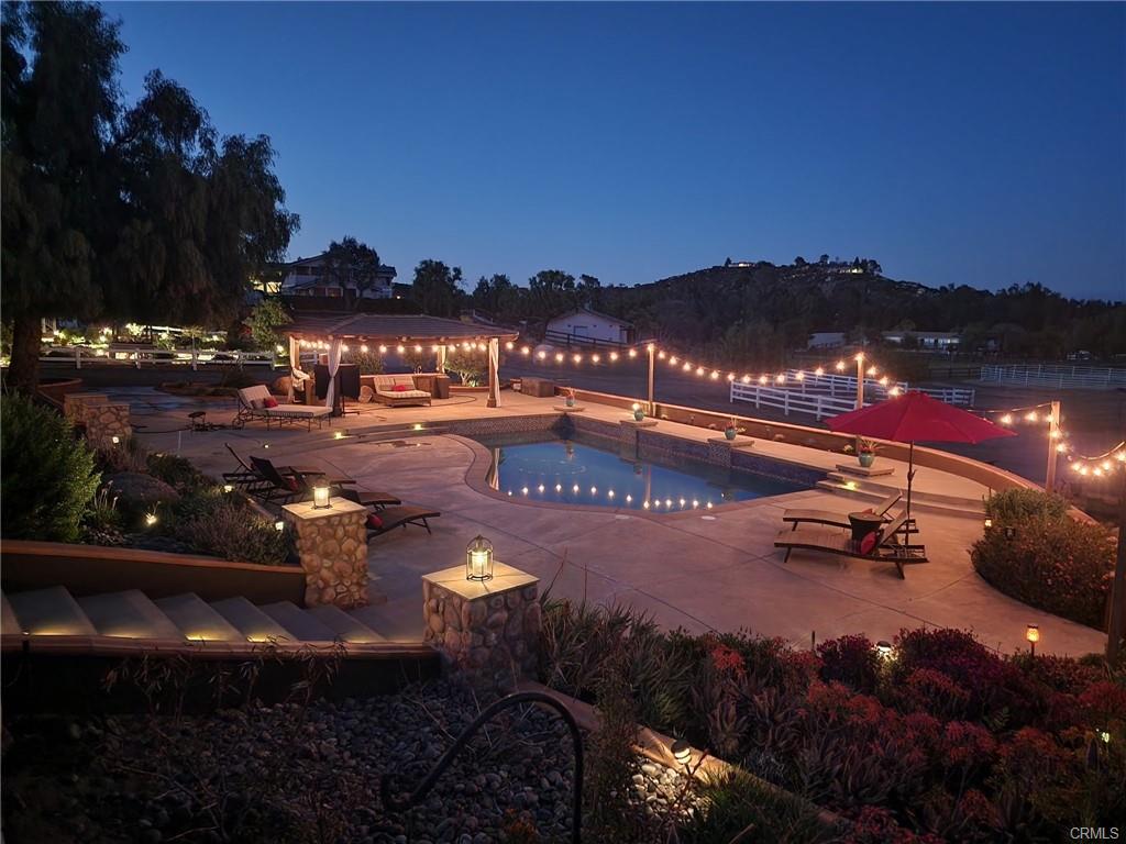 You Must Walk This La Cresta Property – It truly has it ALL! Welcome home to one of the finest equestrian parcels with resort-style living in La Cresta that is fully fenced and tucked away on a quiet cul-de-sac with direct access to riding trails. The property features 2 beautiful single-story homes, custom barn, 3,498 sf workshop/car garage with MX-10 ACX auto lift and 2 large roll-up doors that fit full-size RV, solar-heated swimming pool with waterfalls, 6 person above ground spa, outdoor barbeque kitchen, cabana at pool area, 2 fire pits, chicken coops, above ground gardens, 62 panel fully-owned solar system, two 5,000 gallon water storage tanks and 5.14 FULLY useable acres! For the horse enthusiast, the property boasts a custom shedrow 2 stall barn with tack room, and feed-storage room, automatic waterers and connected turn out stalls. There are currently 3 horse pastures and a round pen with room to add more! The main home is 2,686 sf featuring 3 bedrooms, 3 baths, built-in office, gym/game room, open concept family room and kitchen with top of the line Stainless Steel appliances, breakfast nook, formal dining room, oversized 2 car garage, plus additional detached 2.5 car garage. The 2nd home was built in 2007 is 1,737 sq ft with 3 bedrooms, 2 full baths, attached 2 car garage and office. This property is perfect for multi-generational living, or rental income. Both homes have panoramic hillside and mountain views perfect for enjoying La Cresta sunrises & sunsets. This quiet and secluded property is the epitome of peace and tranquility, while being minutes away from award-winning schools, shopping, and freeway access. Must see in person to appreciate all this property has to offer! Square footage not taped, buyer to verify.