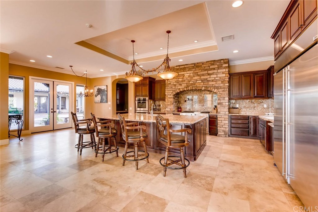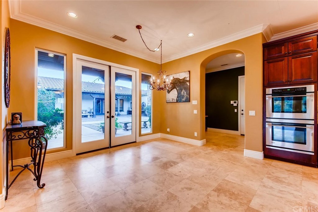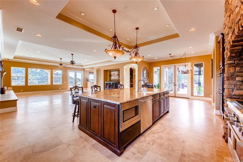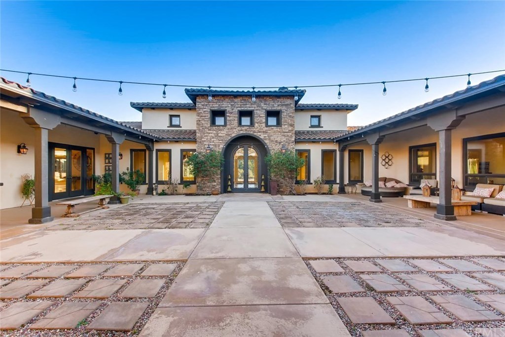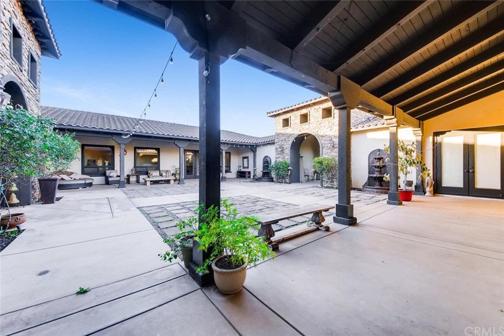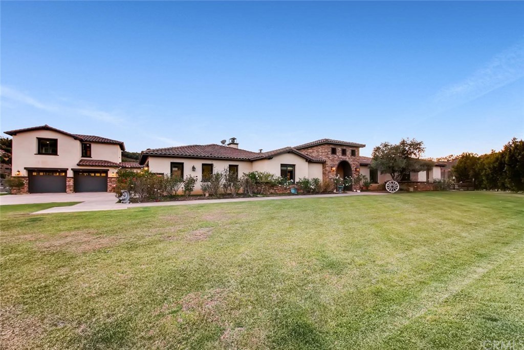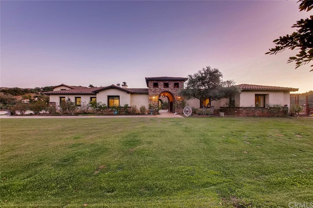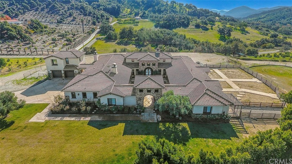 Welcome home to this stunning SINGLE STORY 6,436 sf estate in the beautiful hills of De Luz. Located just minutes from Old Town Temecula and the growing Temecula wine country, this property is more than a home; it’s a luxury destination. Imagine welcoming your guests to a private courtyard with a cozy fireplace under twinkling market lights. Double iron doors lead you inside to a massive great room with hardwood floors, 16’+ ceiling and dramatic fireplace. A gorgeous Chef’s kitchen offers a six burner range with pot filler and stone surround, 2 dishwashers, 2 sinks, SS refrige/freezer, gleaming granite counter tops and backsplash. The family room has a raised hearth fireplace, built in cabinetry, and views of the hills beyond. A wet bar includes a ice maker, beverage refrigerator, dishwasher and adjacent wine cellar. The master bedroom suite has a fireplace, stunning hillside views, his and hers closets with built ins, and convenient access to the laundry room. The master bath offers his and hers sinks, granite counter tops, linen storage, jetted tub, enormous shower with multiple shower heads. Four additional en-suite bedrooms, one with a separate entry complete the main home. An additional bedroom with private bath, separate entry and commanding hillside views is perched above one garage. The second oversized garage offers built in cabinets, refrigerator and sink area with access to the courtyard. The land offers a multitude of options from horses to vineyards.