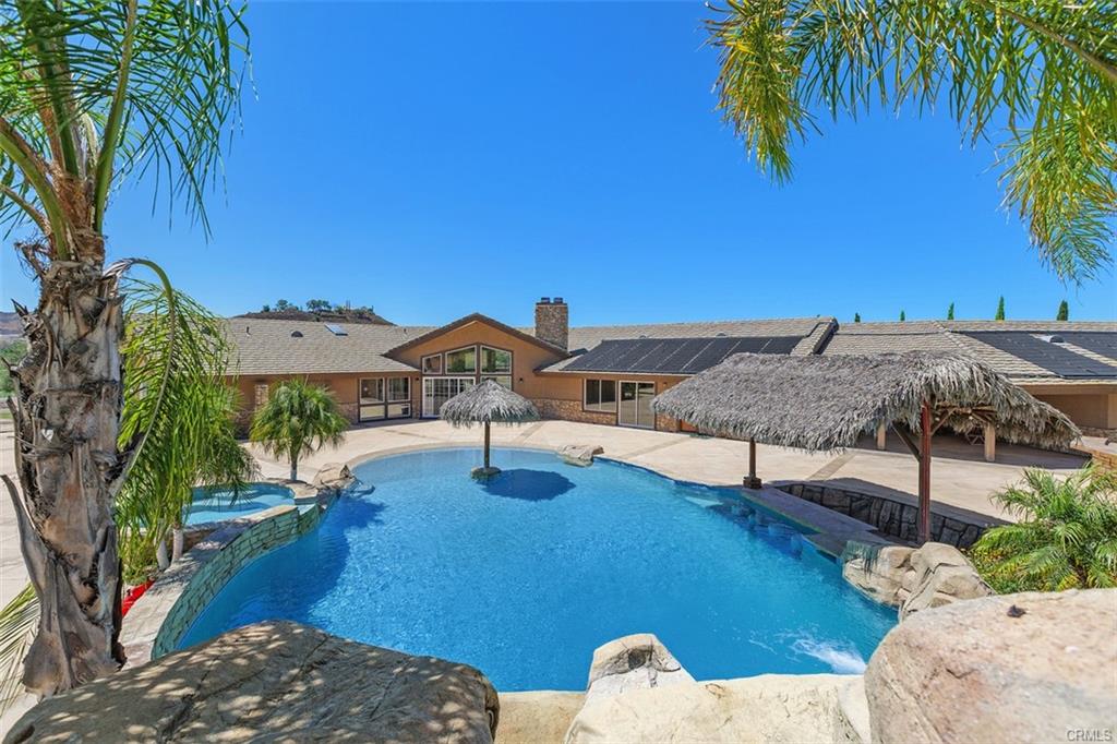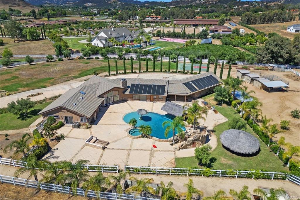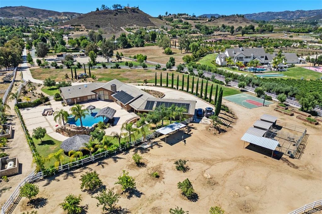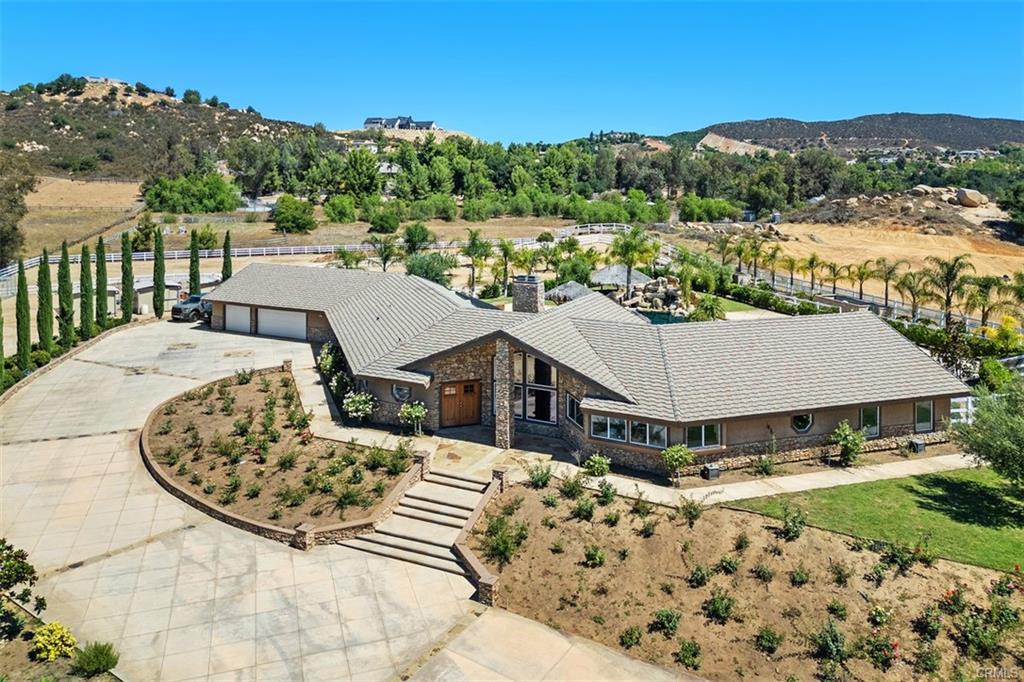 Discover the perfect blend of luxury, privacy, and functionality in this single-story estate, nestled in the prestigious La Cresta community. Set on a fully usable, flat parcel accented by natural rock outcroppings, this custom-built home offers designer finishes throughout, 6″ exterior insulated walls, and a lifestyle defined by both sophistication and comfort. Step into a grand great room with soaring vaulted ceilings, handcrafted cedar beams, and a dramatic stone fireplace. The expansive, open-concept layout is anchored by a chef’s kitchen, recently upgraded with modern cabinetry, sleek countertops and premium fixtures. Take in panoramic views of the surrounding foothills through the expansive kitchen windows, blending natural beauty with refined living. The thoughtfully designed split-bedroom floor plan includes a luxurious primary suite tucked away for privacy, featuring a spa-inspired en-suite bath and a cedar lined walk-in closet. Secondary bedrooms include a Jack-and-Jill suite and a versatile bonus room with its own fireplace and bath—ideal for a guest retreat, game room, or mother-in-law quarters. All bathrooms throughout the home have been tastefully remodeled with designer selected finishes, elevating both style and comfort. The interior also offers an oversized laundry room with additional storage, utility sink, and central vacuum system. A covered breezeway leads to a 1,200 sq. ft. finished garage deep enough for large trucks or sports cars, complete with a workshop area and utility sink. Outdoors, your private resort awaits. Enjoy a 50,000 gallon custom pool with beach entry, 10-foot deep end, spa, rock waterfall, waterslide and swim up bar—surrounded by lush landscaping. Gather around the built-in firepit, or entertain under the stars at your outdoor kitchen, featuring a built-in BBQ, spacious prep counters, and a two-burner cooktop. A private well irrigates the entire landscape and outdoor features . Equestrian amenities include two in-and-out corrals with stud panel fencing, large pasture, a tack/feed/storage room, and a riding trail encircling the property. You’ll also find a chicken coop, fruit trees, and raised garden beds, with extra space to expand and bring your outdoor hobbies to life. The La Cresta lifestyle, where luxury meets freedom and nature. Move-in ready and rich in opportunity, this estate is ready to welcome its next discerning owner.